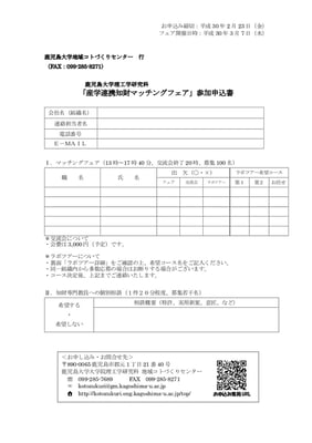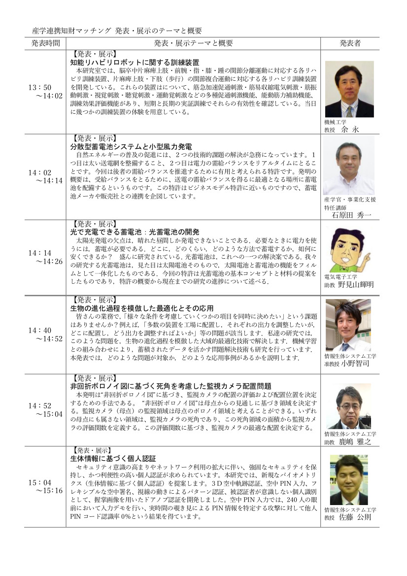 本フェアにより企業人と大学教員との関係が深まり、知財に基づく事業化や新たな共同研究等に繋がっていくことが期待されますので、興味のある方は是非ともご参加下さい。(申し込み期限は過ぎておりますが、まだ大丈夫のようです。)
