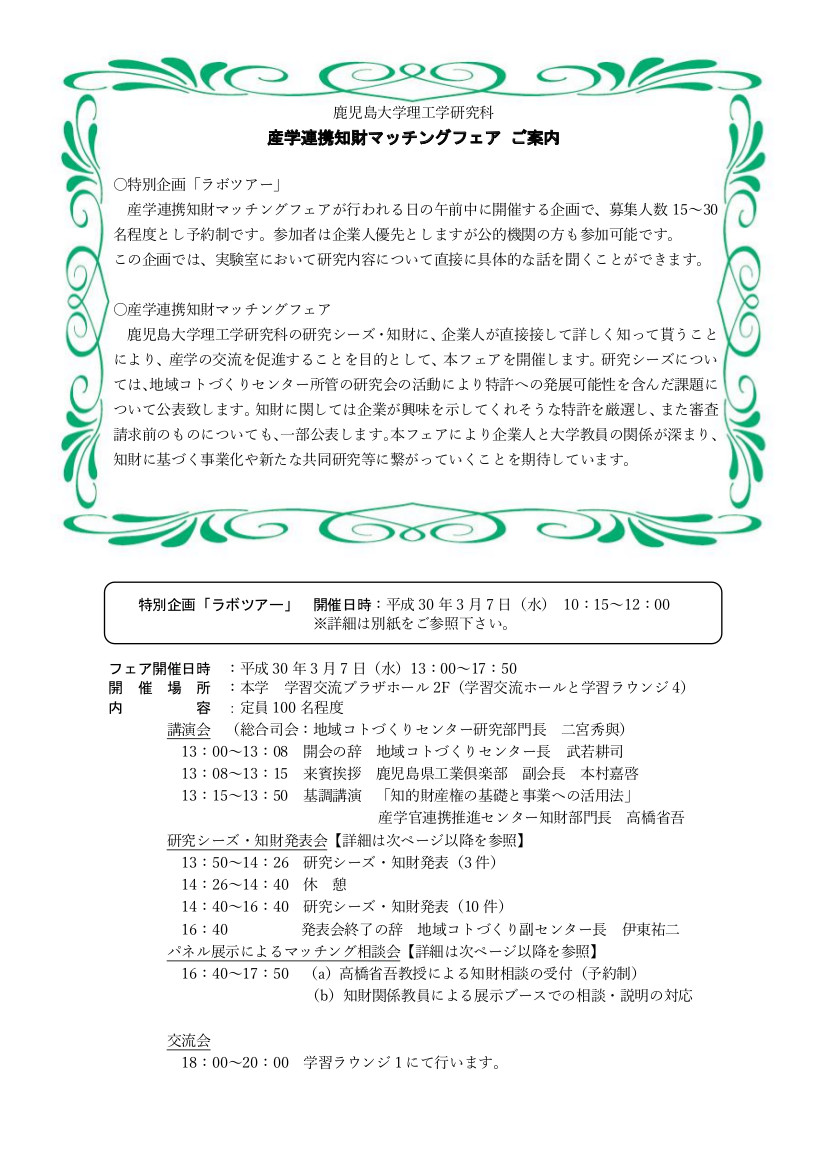 3月7日(水) 鹿児島大学郡元キャンパスにて表題のフェアが開催されます。